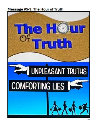 “The Hour of Truth” (Message #5-9) is a challenging but necessary message that exposes the subtle ways the enemy uses self-deception and comfortable fables to lead believers away from God’s path.